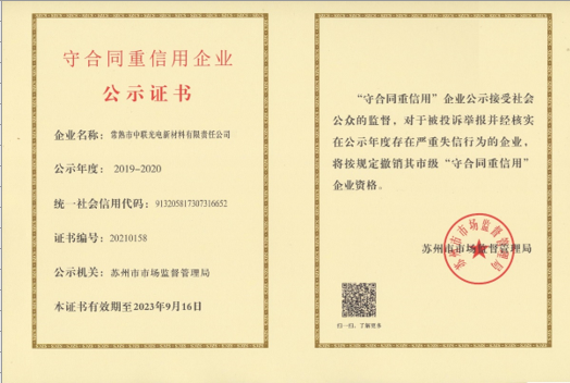 日前,蘇州市市場監(jiān)督管理局公示了“守合同重信用企業(yè)”名單,經(jīng)相關(guān)機構(gòu)重重篩選、嚴(yán)格評定,中聯(lián)光電公司被評為“2019-2020年度守合同重信用企業(yè)”。