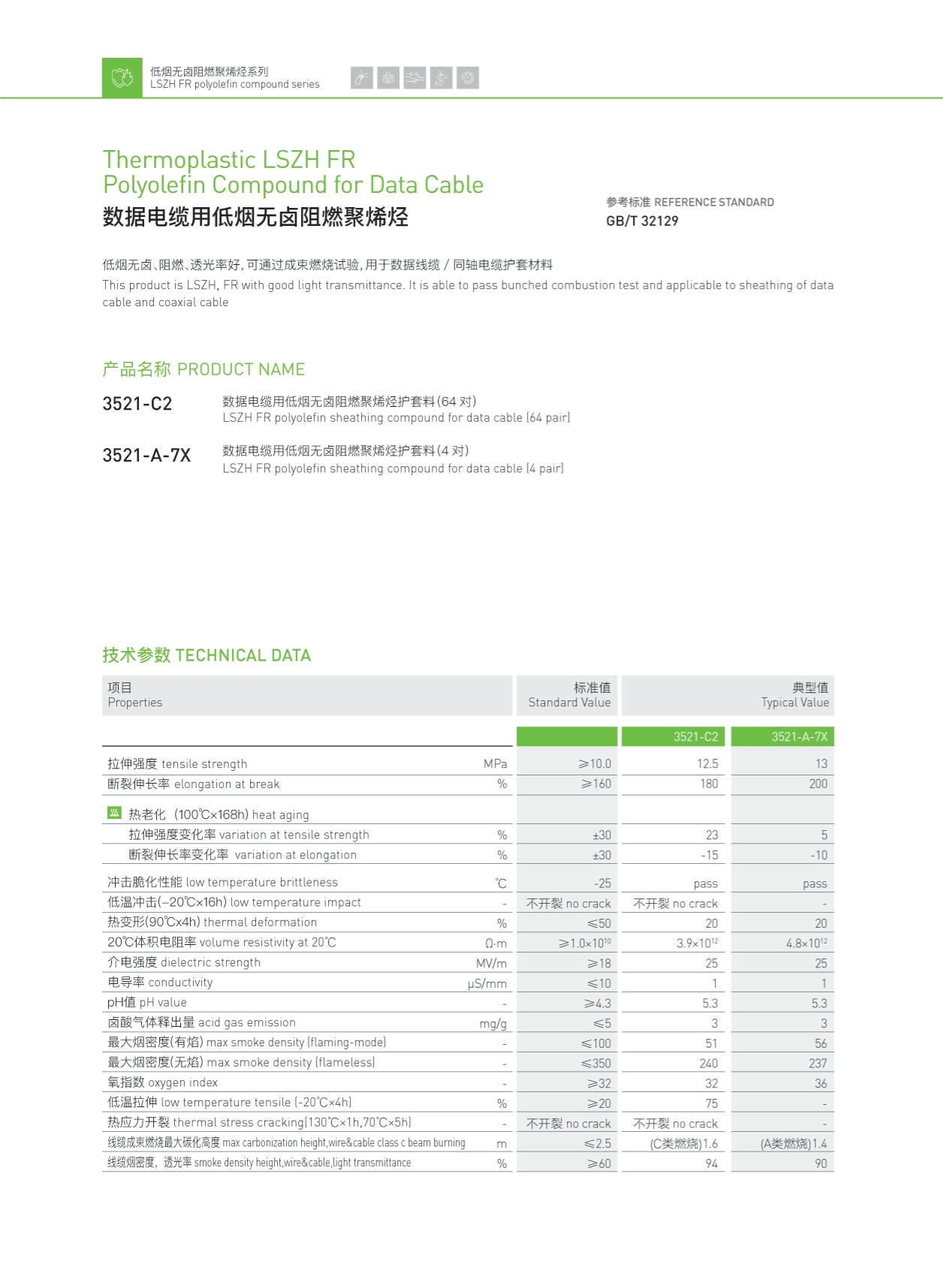 數(shù)據(jù)電纜用低煙無鹵阻燃聚烯烴