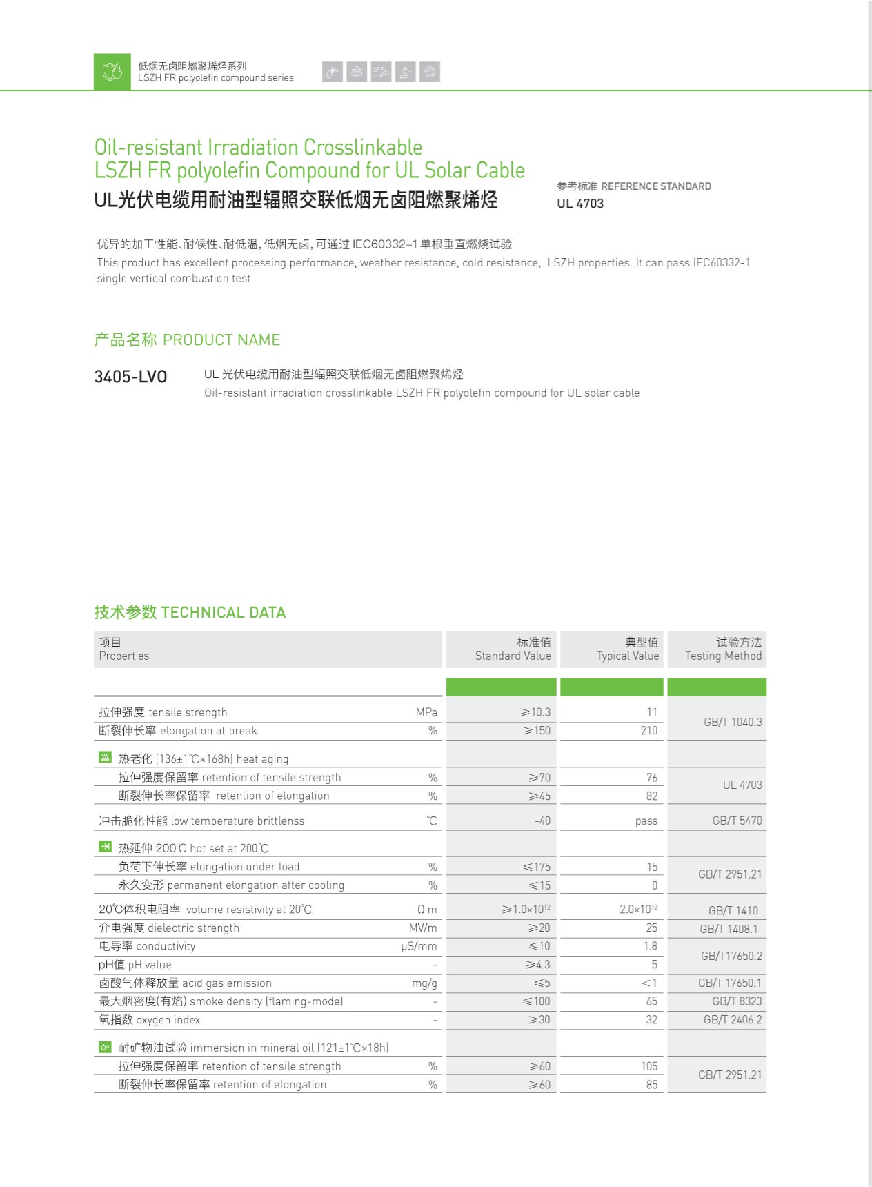 UL光伏電纜用耐油型輻照交聯(lián)低煙無(wú)鹵阻燃聚烯烴