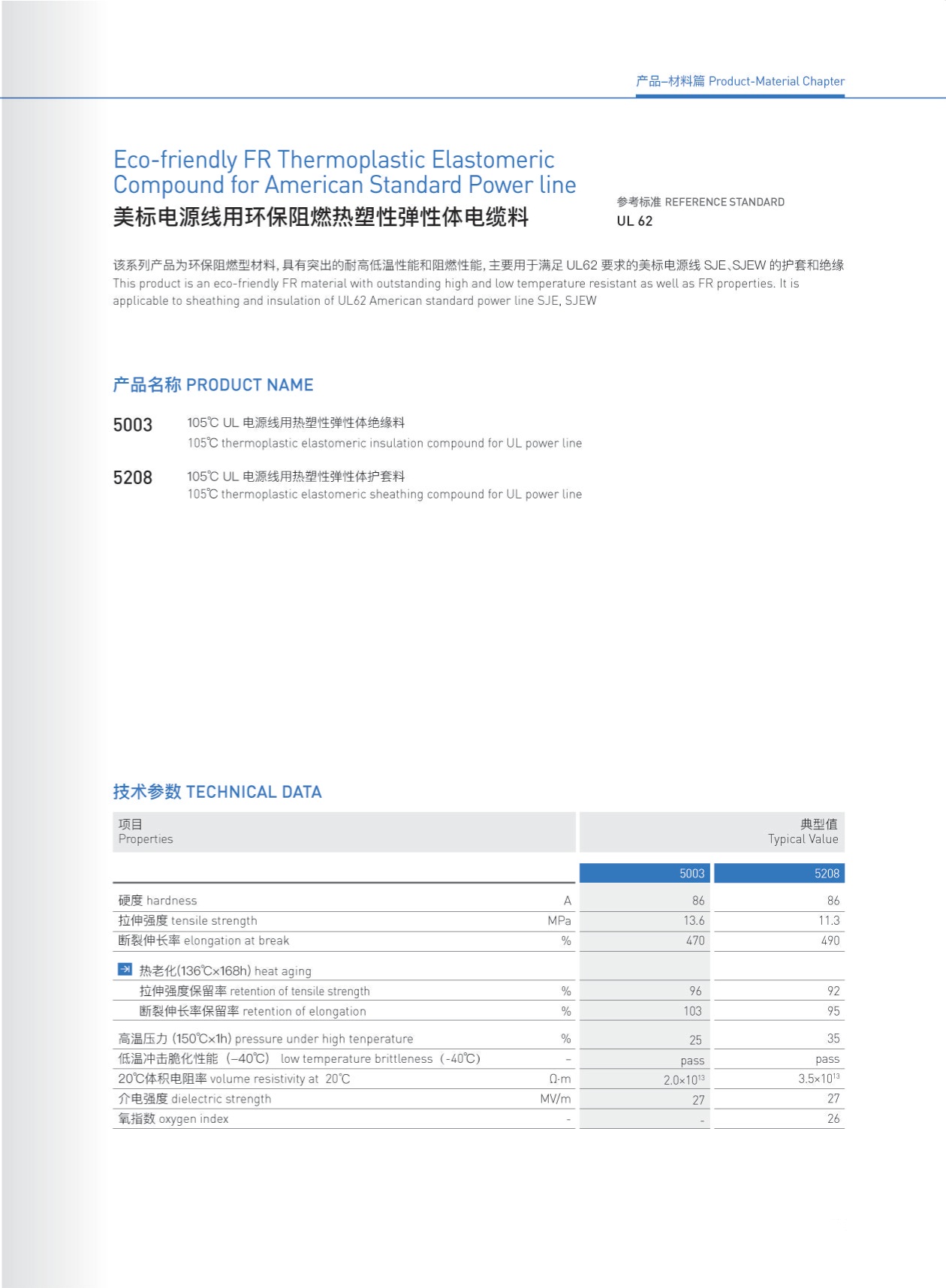 美標(biāo)電源線用環(huán)保阻燃熱塑性彈性體電纜料