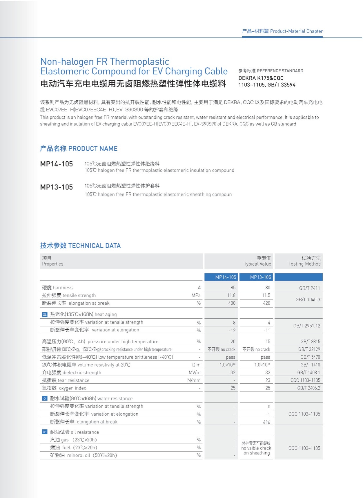 電動汽車充電電纜用無鹵阻燃熱塑性彈性體電纜料