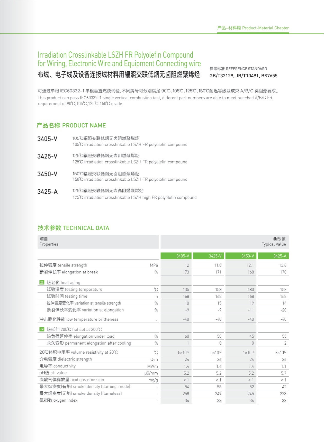 布線、電子線及設(shè)備連接線材料用輻照交聯(lián)低煙無鹵阻燃聚烯烴