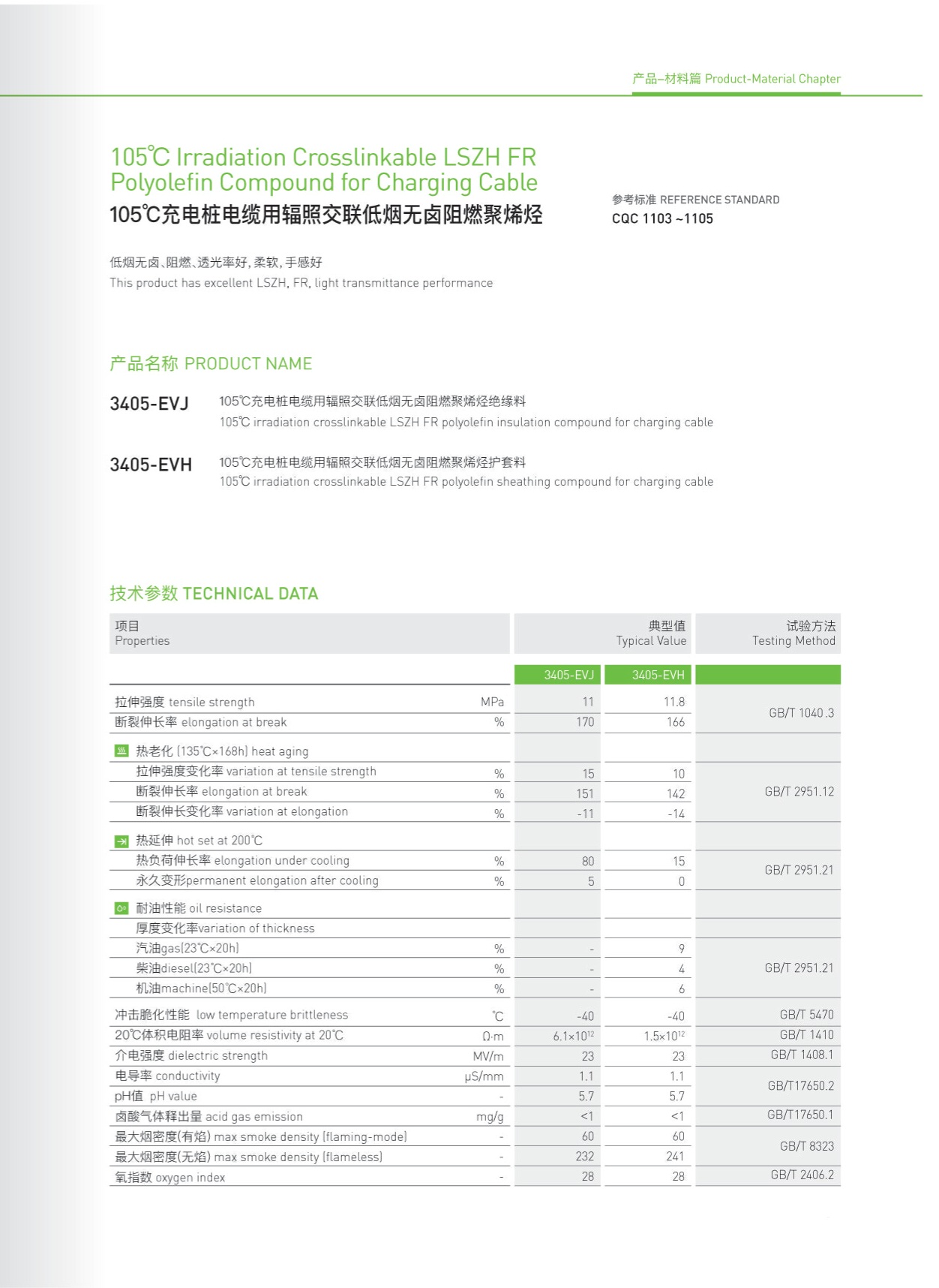 105℃充電樁電纜用輻照交聯(lián)低煙無鹵阻燃聚烯烴